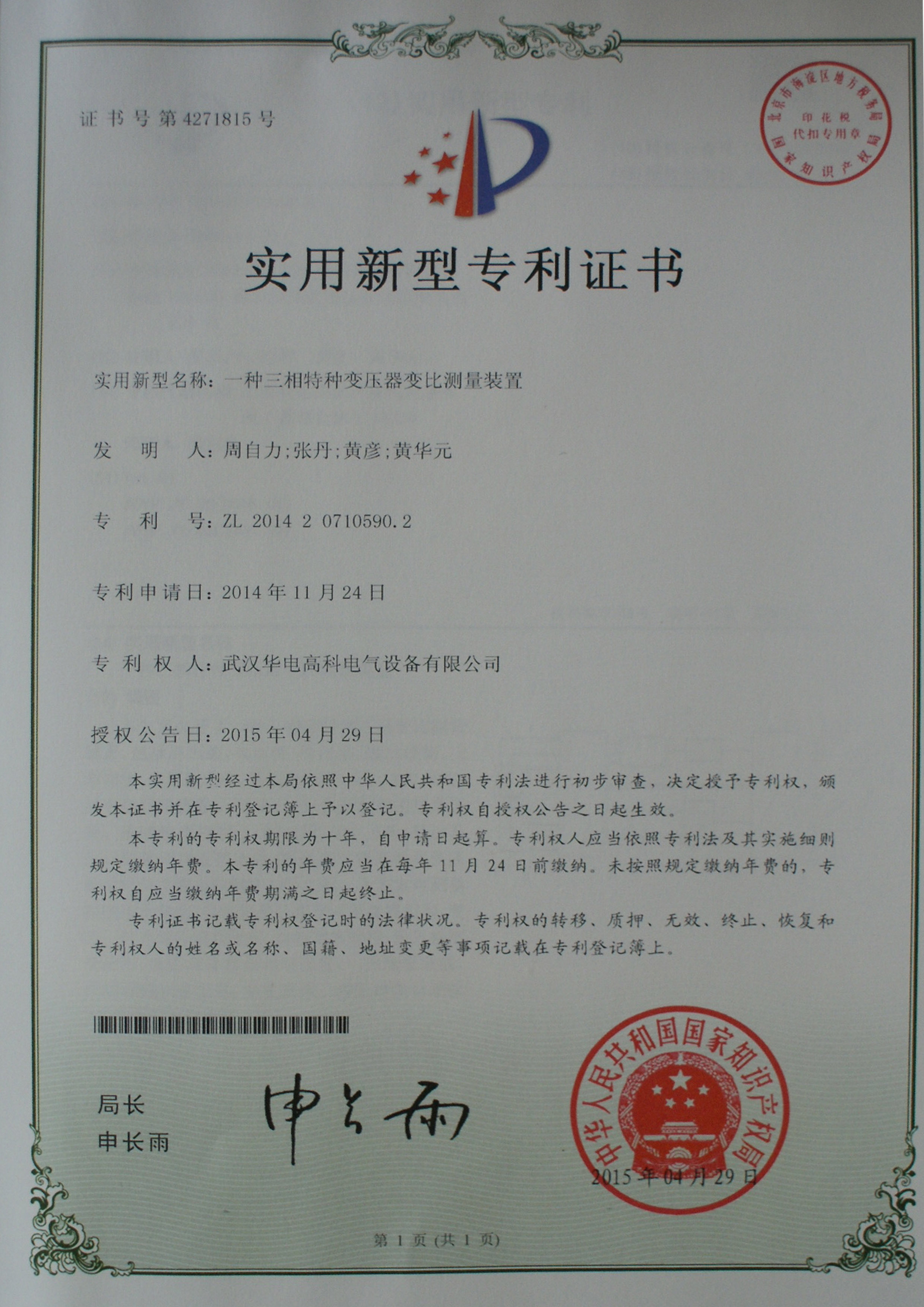 武汉华电高科质量服务诚信证书