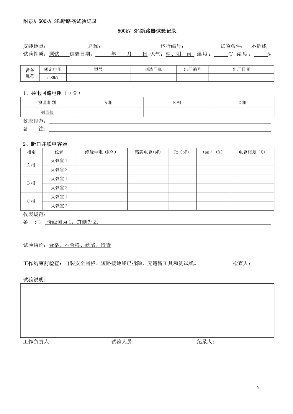 500kVSF6断路器预防性试验(电气部分)作业指导书