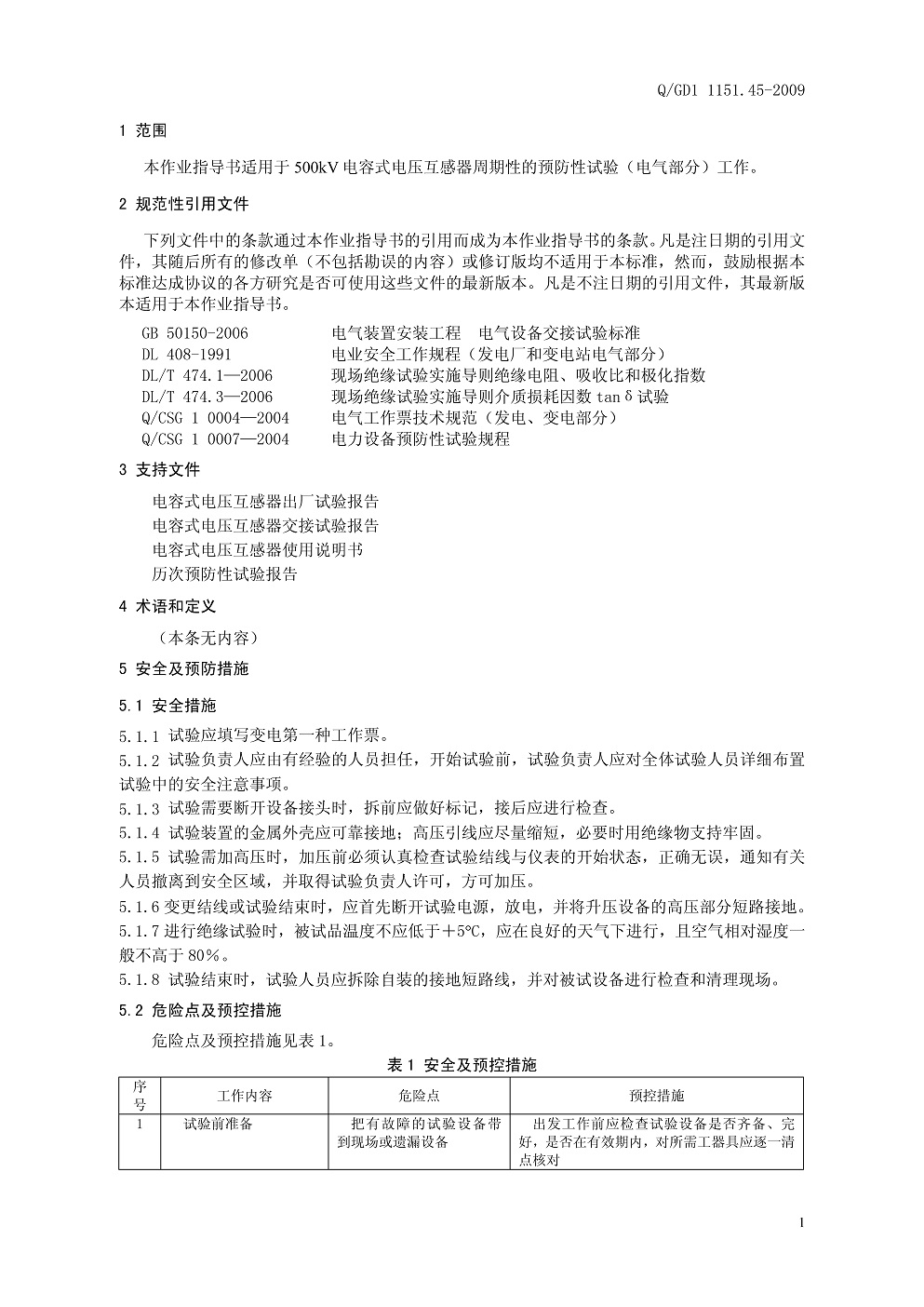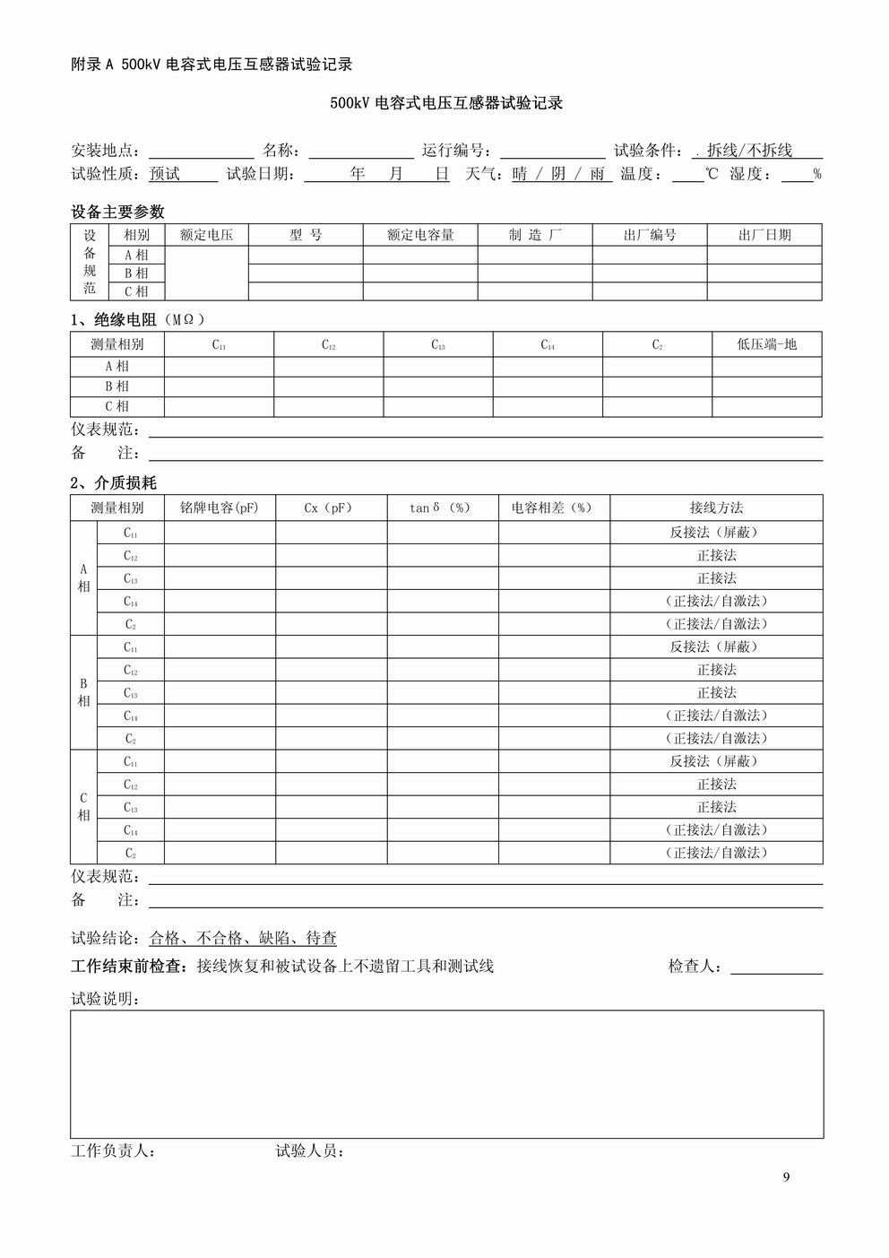 500kV电容式电压互感器预防性试验(电气部分)作业指导书