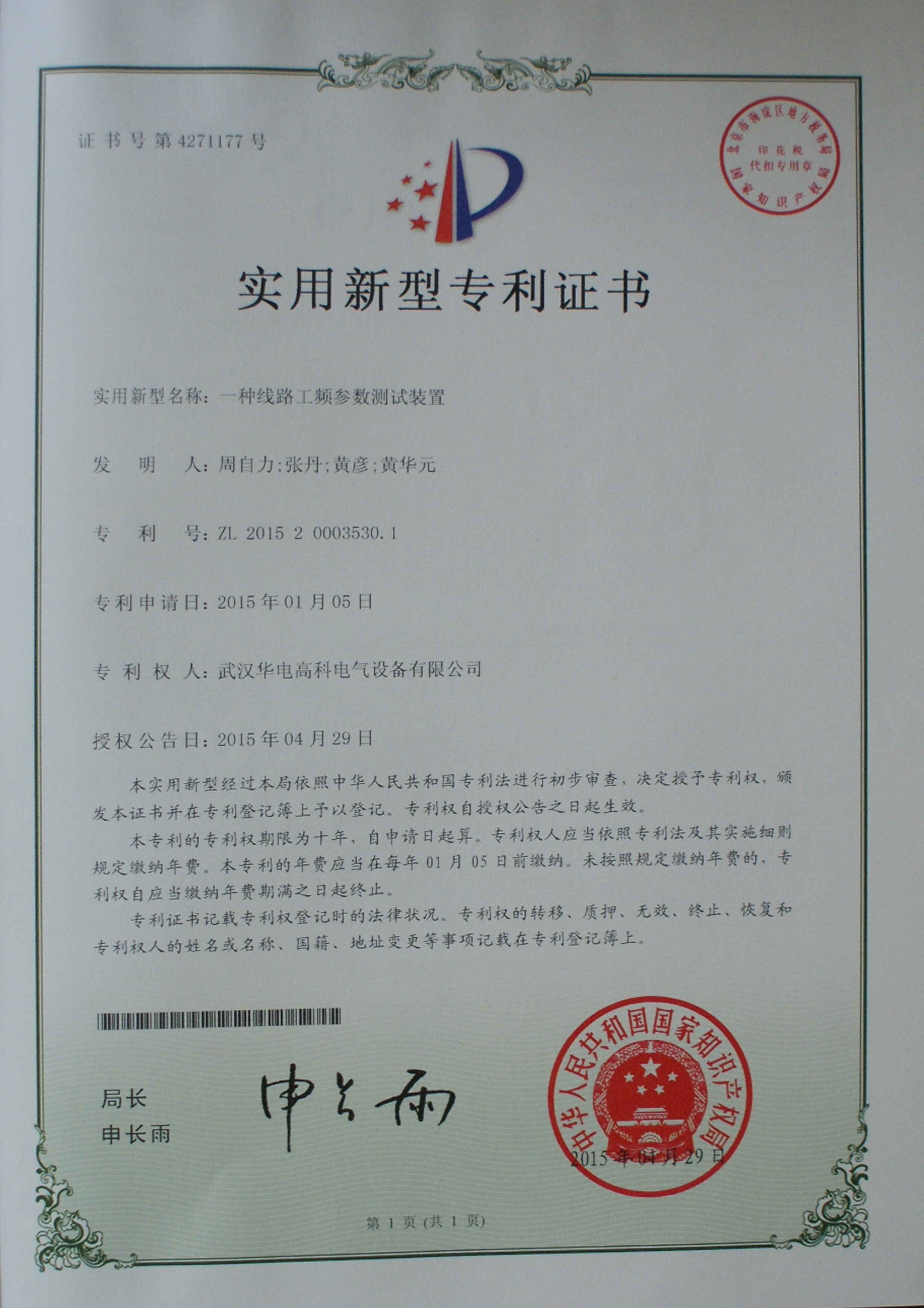 武汉华电高科质量服务诚信证书